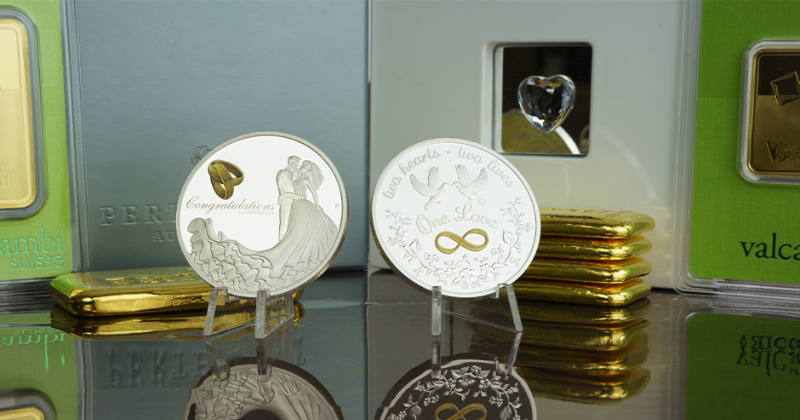 Веднага щом се получи поканата за сватбата, мисълта за подаръци за булката и младоженеца започва веднага. Когато се търси специален и незабравим сватбен подарък, погледите все по-често се насочват към инвестиционните златни, сребърни и колекционерски монети, които често се наричат и подаръци за бъдещето.