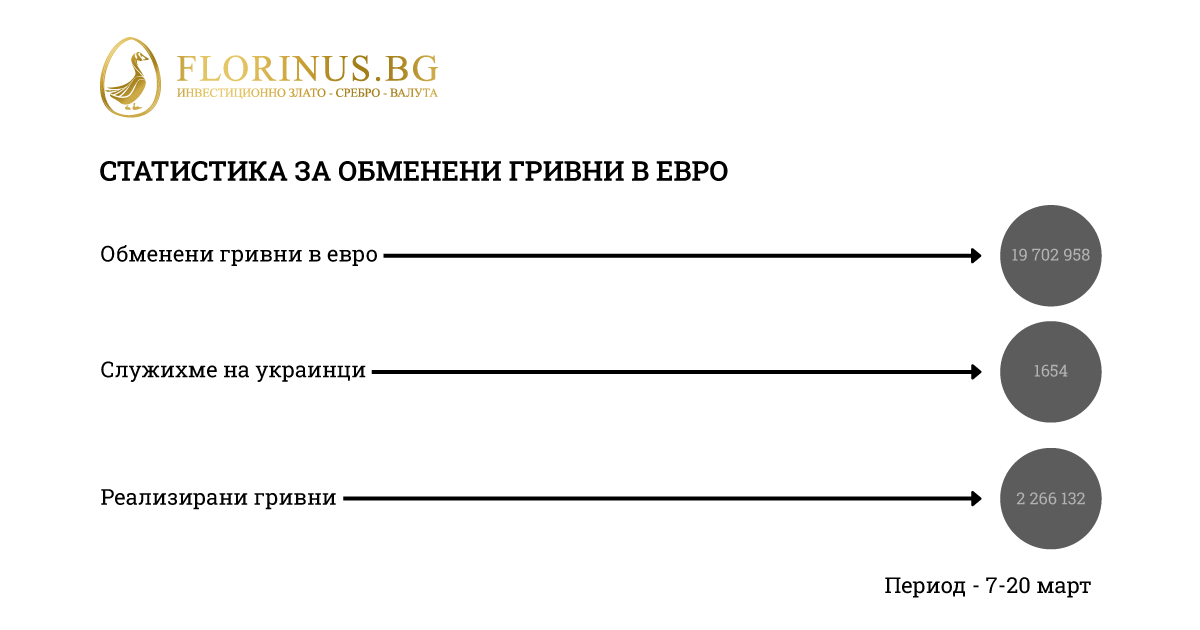 През първите две седмици от старта на войната във всички салони на Florinus в Литва бяха събрани и обменени в евро над 19 милиона гривни. Обмяната на гривни в евро все още е едно от основните предизвикателства за украинците в Литва (и не само). Войната на Русия срещу Украйна, която продължава вече почти месец (към този момент), принуждава все повече хора да се оттеглят от военната агресия.
