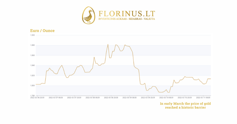 As the first day of the war began, the price of gold reached its highest level since the summer of 2020. And the demand for these assets has increased significantly in all Florinus salons in Lithuania. It is estimated that more than 1 million euros worth of precious metals were sold in the early days of the war.
