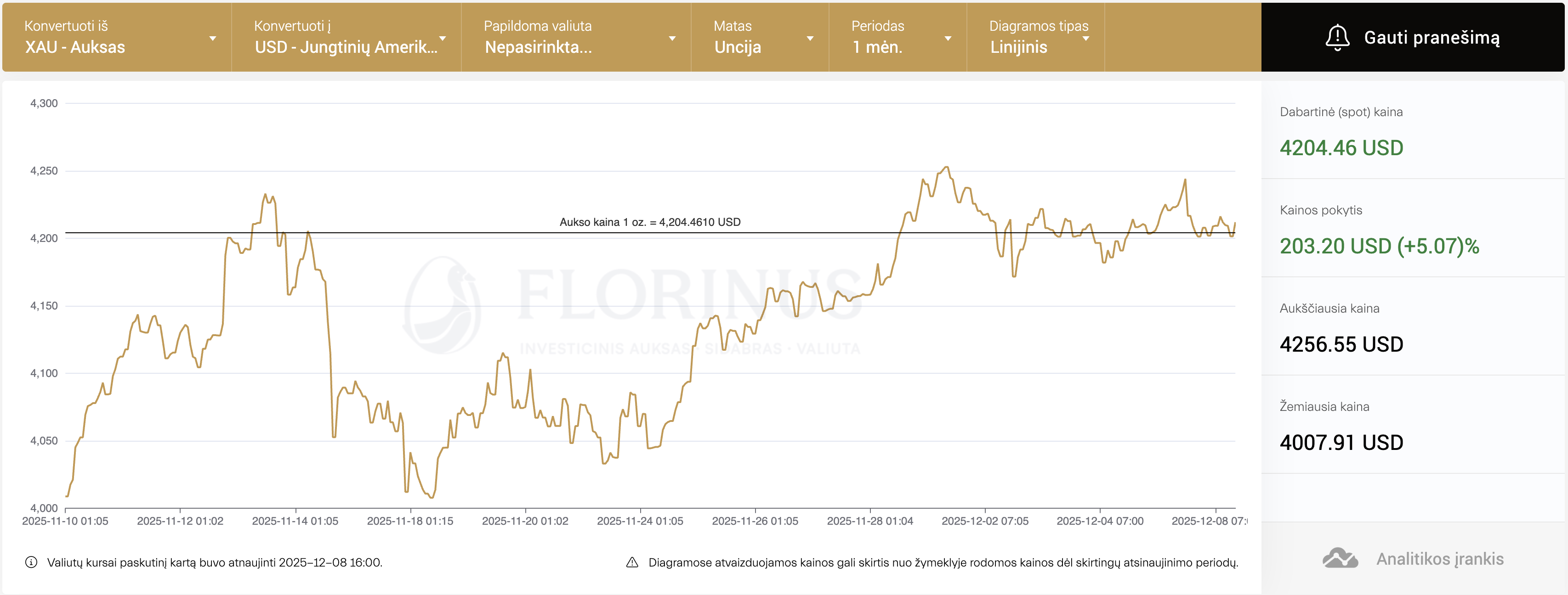 Žemiau pateikiami 1 mėnesio laikotarpio aukso ir sidabro grafikai ir kainos pakyčiai.