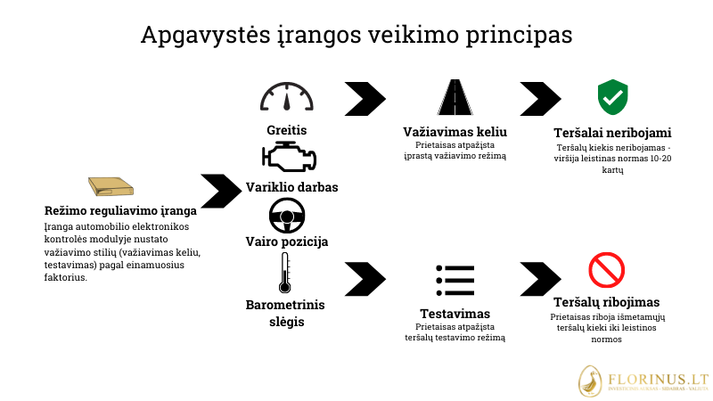 Šių prietaisų veikimo principas leidžia įvertinti automobilio važiavimo režimą ir apgauti išmetamųjų dujų lygio patikras. Prietaisas nustato teršalų testavimo režimą, kad galėtų sukelti pagaulingą išmetamųjų teršalų kiekį.