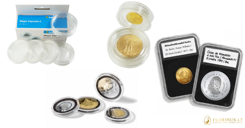 Более того, особо ценные монеты мы рекомендуем хранить в сейфах. В том случае, если Вы не решаетесь хранить монеты дома, Вы всегда можете воспользоваться услугами специального хранилища. Для Вашего удобства Florinus предлагает услугу аренды индивидуального сейфа в двух Florinus хранилищах: в Вильнюсе (Šeimyniškių g. 24) и в Алитусе (Pulko g. 5).