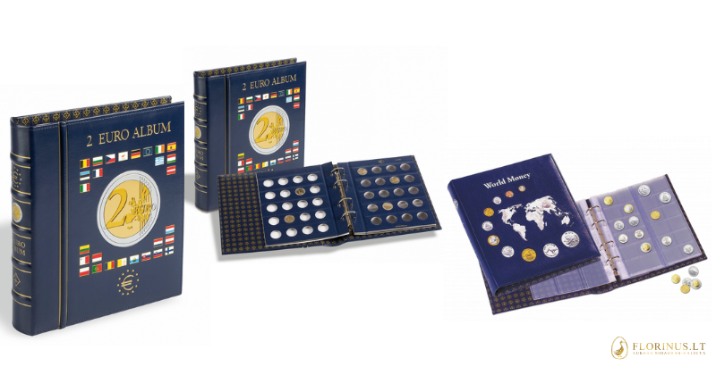 Большую коллекцию монет удобней всего хранить в альбоме. В альбоме вся Ваша коллекция будет располагаться в одном месте, в удобном виде. Альбомы отлично подходят для хранения монет подороже. Более того, альбомы для монет позволяют осматривать монету сразу с обеих сторон. Большинство альбомов предназначены для какого-либо одного вида монет (например, евро монеты 2 евро). Несмортря на то, что альбомы стоят дороже футляров и холдеров, они позволяют держать всю коллекцию в одном месте и являются более надежным местом хранения.